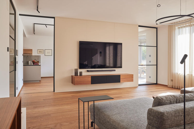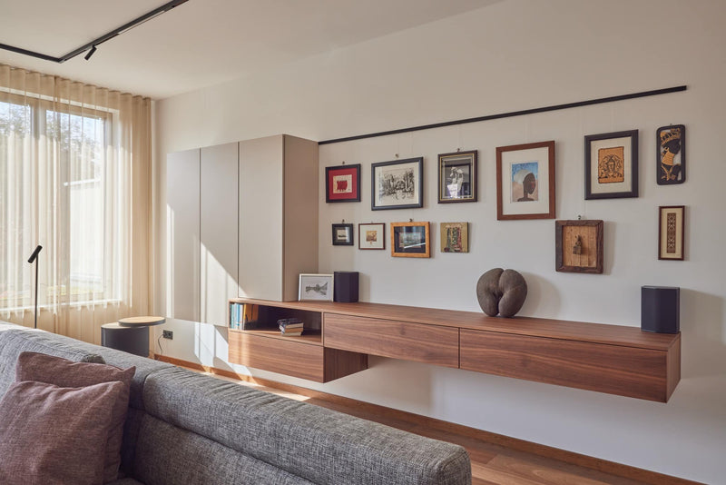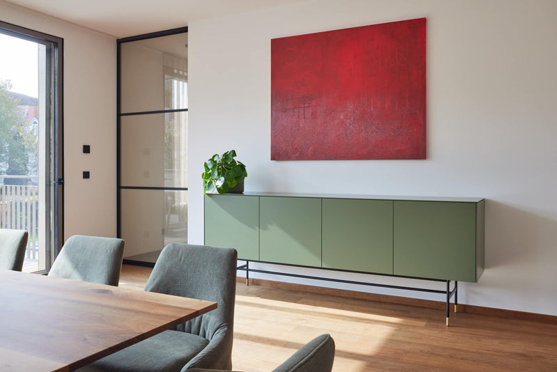 Die reduzierte Gestaltung schafft einen harmonischen Lebensraum, in dem Architektur, Design und Kunstliebe eine Einheit bilden.